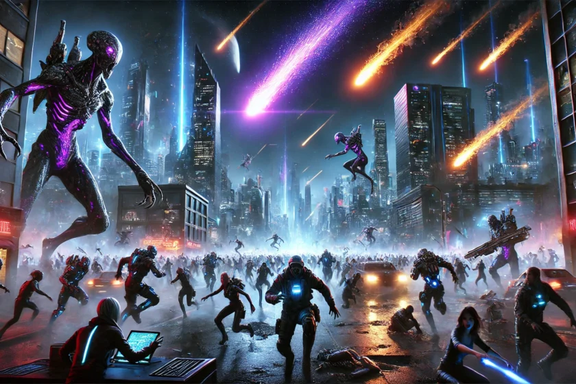 Eran cerca de las cinco de la mañana en Órbita Null, el barrio más peligroso de ex N’ Cypher. Afuera, el caos seguía desatado, y las criaturas biotecnológicas avanzaban por las calles como si el propio infierno se hubiera liberado.Dentro del bar The Solar Rift un grupo de sobrevivientes se refugiaba, con las ventanas tapadas y el miedo impregnando el aire.