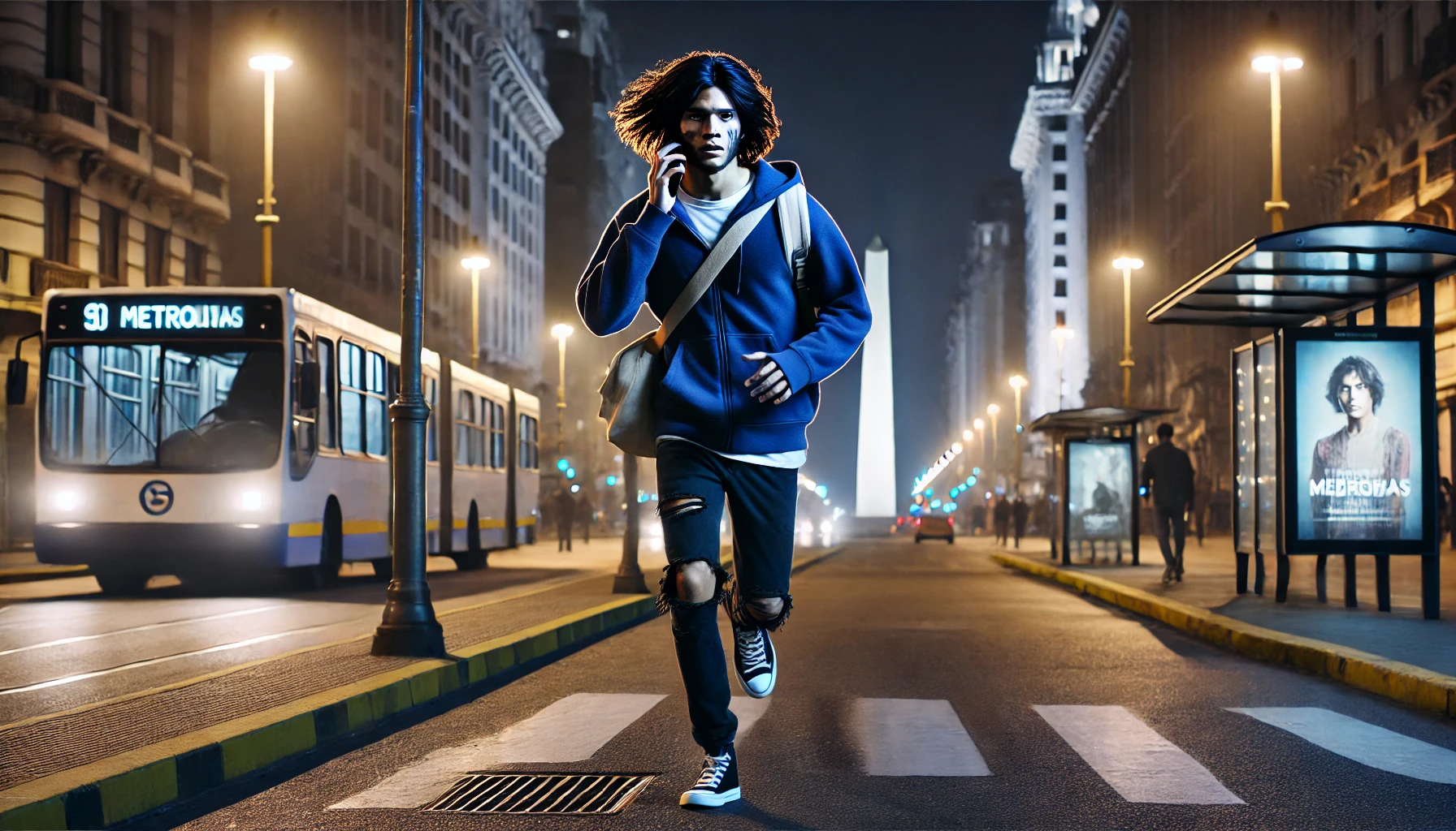 La noche es muy fría en Buenos Aires Teo ya salió del colegio luego de despedirse del Guardia de Seguridad...